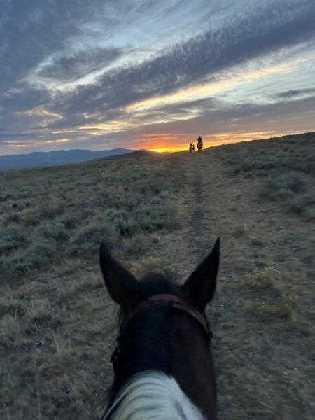 今月の仕事の内容は、先月に引き続き子牛の世話や牛の仕分け・出荷、それから週に一度ほどのカウボーイの仕事が中心です。先月までは25頭ほどの子牛を管理していましたが、そのうち13頭を体格や健康状態を基準に出荷しました。3か月という短い間でしたが、毎日朝晩に餌をやり体調を見てきたので、まるで自分の子供が巣立っていったような気持ちになりました。とはいえ、まだ半分ほど残っているので、最後までしっかり観察して健康管理を続けたいと思います。子牛の中でもに、ミルクを飲んでいた頃から世話をしている子たちはすっかり人に慣れて、餌やりのたびに一緒に過ごすのが毎日の楽しみになっています。カウボーイの仕事も少しずつ慣れてきて、毎回新しい発見をしながら楽しんでいます。馬への乗り方やローピングの方法など基本的なことは教わりましたが、「この馬と息を合わせるにはどんな乗り方がいいのか」と自分なりに考えながら乗るようになりました。長時間馬に乗る機会も増え、谷や坂を越えることもあるので怪我に気をつけながら経験を積んでいきたいです。