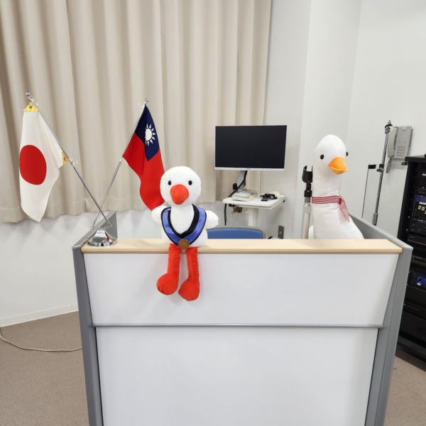 当日は、山下獣医学群長、井坂獣医学類長、能田学術交流・国際化推進委員長、福田茂夫生産動物病態学ユニット講師、萩原社会連携センター長、台湾からの留学生で獣医学研究科博士課程1年のオウ・シンチェンさんと共に、中興大学の皆様をお迎えしました。