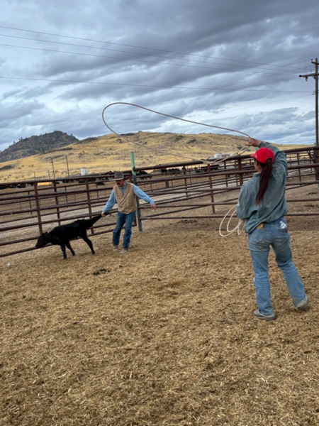 今月8日にワシントン州からカリフォルニア州へ移動しましたが、移動前日の7日まで農場で作業を続けました。作業内容は先月に引き続き、牛の捜索と秋に生まれた子牛への耳標付けです。耳標を付ける際は、放牧地から連れてきた母牛と子牛のグループを小さな囲いに入れ、ペアを確認します。どの母牛がどの子牛の母親かは見た目では分からないため、子牛がどの母牛の母乳を飲んでいるかを観察して見分けます。子牛は自分の母親からしか母乳を飲まないため、その行動を見つけたらロープで子牛を捕まえ、倒して耳標を付けます。私も挑戦しましたが、子牛はとても素早く逃げるので難しかったです。
