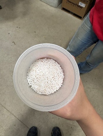 これは、ルーメン内での分解を防ぐために特殊なコーティングが施された白くて軽い、小さな粒状のサプリメントで、牛が飼料とともに摂取することで第一胃で分解されず、下部消化管まで有効成分が届くように設計されています。ルーメン内で栄養素が失活してしまうという課題を解決するための工夫を実際に目にすることができ、飼料設計や代謝研究の重要性を改めて実感しました。