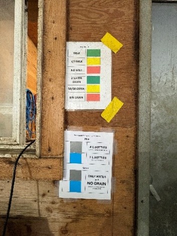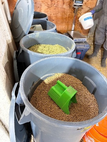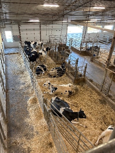 この実験では、アルファルファを主体としたスターター飼料の違いによる子牛の採食量や成長指標への影響を比較するため、複数区に分けた給餌試験が行われていました。(図5)日本で私が現在携わっている、哺育預託牧場における体調不良子牛の疾病予測を目的とした観察・採材を含む試験とも類似点が多く、現地スタッフとの連携の仕方や実験運営の工夫など、学ぶことが多くありました。