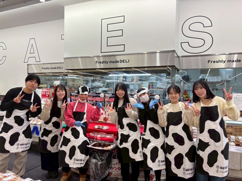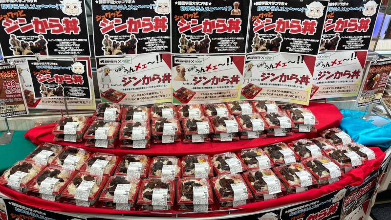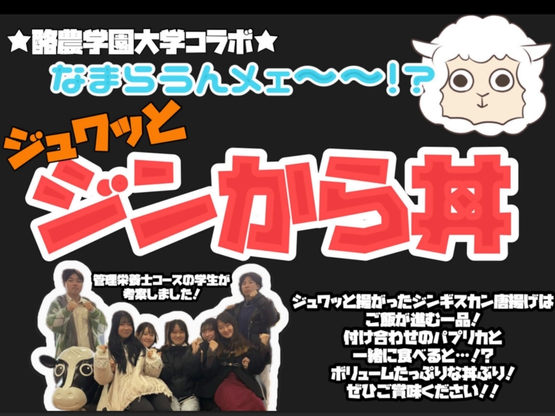 2024年には 5 種類の総菜を、 2025 年には北海道のソウルフードである、ジンギスカンを唐揚げにした 「ジンから丼」 を企画・販売しました。自分たちが考えた商品をお客様に直接紹介できるのは、教室では味わえない貴重な経験です。