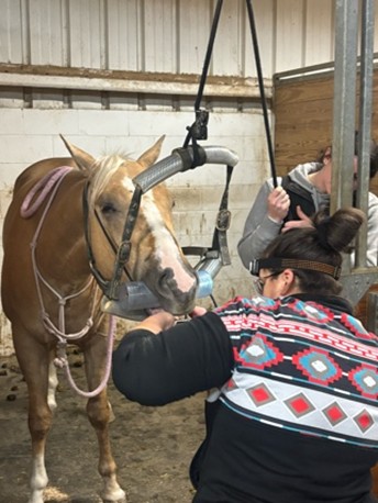 平日は毎朝Western farmやEnglish farmといった馬の厩舎に行き、フィンドレー大学の学生と一対一で馬の飼育管理や厩舎の清掃、馬具の取り付け方など馬の基本から全て教えていただきました。いままで馬を扱った経験がなかったため、最初は何も分からず馬を自分の手で扱うことに緊張しましたが、3週間毎日馬と接したことで自力で馬具を取り付け、馬を手綱で引くことができるようになりました。