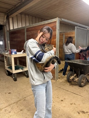 私は2026年3月10日から3月30日までの約3週間、アメリカ合衆国のオハイオ州にあるフィンドレー大学にて「ベーシック•アニマルハンドリングプログラム」に参加いたしました。今回参加した決め手としては、将来海外で獣医師として働きたいと考えており、そこで実際に英語環境で動物を扱う経験をしてみたいと思ったためです。以下に、本プログラムで得られた学びや経験を報告いたします。