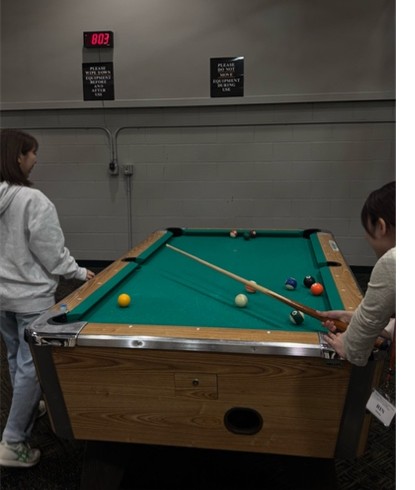 授業外の時間では、フィンドレーの大学内や街中を自由に散策しました。大学内は施設が充実しており、ビリヤードやビデオゲーム、ロッククライミングなどを楽しみました。街中ではタコスやドーナッツのお店に入り英語での注文に挑戦したり、古着屋で買い物をしたりしました。フィンドレーは治安が良く、何よりも人々が本当に親切なのでとても過ごしやすかったです。
